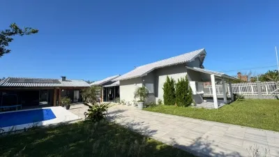 Linda casa de alto padrão, estilo contemporâneo, localizada no Centro de Imbé. Grande e acolhedora área privada. Composta por 05 suítes, 01 banheiro social, ampla sala de estar com pé direito duplo, aberturas em vidro que proporcionam uma iluminação natural, lareira robusta, cozinha, área de serviço, água quente em todos os cômodos, iluminação fotovoltaica, quiosque gourmet com churrasqueira, forno a lenha, ampla bancada, linda piscina, jardim inspirador com belas árvores.